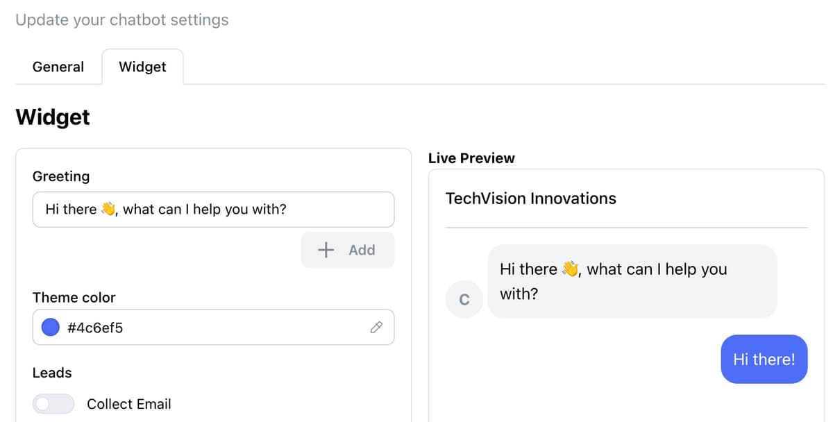Easily customize how your chatbot looks to have it seamlessly blend into the style of your website.